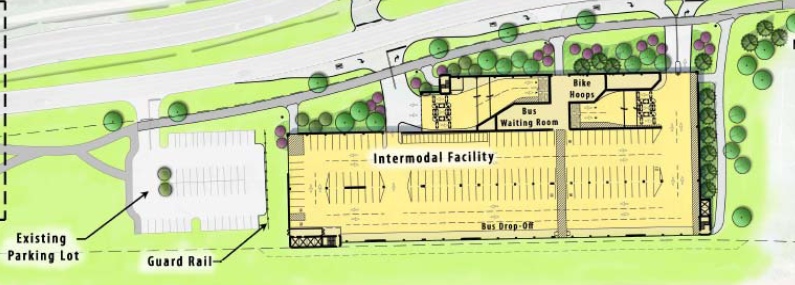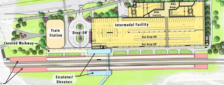 The “concept plan” also calls for an eventual train station where the surface parking lot is.  But it is not part of the current plans for construction and has not been funded.